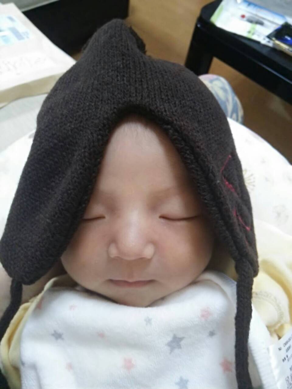 写真送ってもらって・・・えぇ、帽子でかい!!