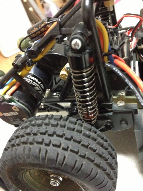 ノーマルは、バネのみのショックだから、ピョンピョン。それはそれで、楽しくて、スピード出して曲がろうもんなら、転がって行きそぅな…ホビーラジコンの楽しさが、詰まった名車だね( ̄^ ̄)ゞ