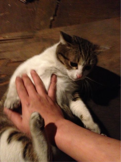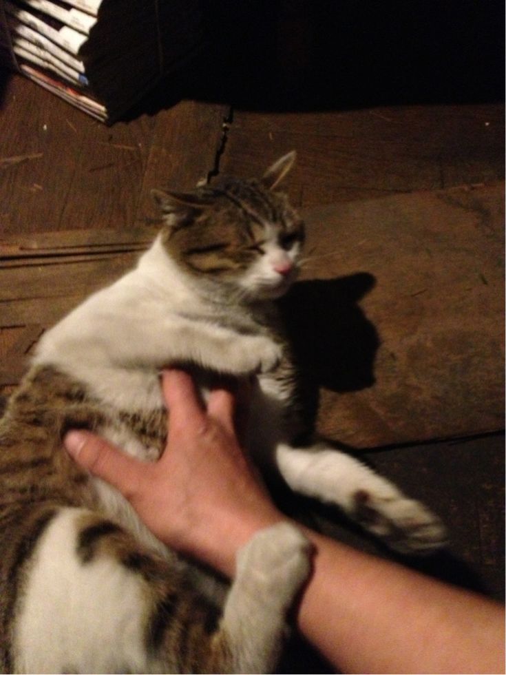 デカい腹を触ると喜ぶ…