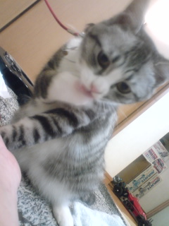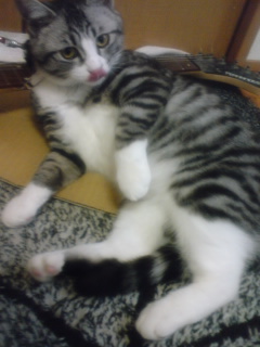 トイレの砂をかいてて、一部が場外ホームラン・・・。